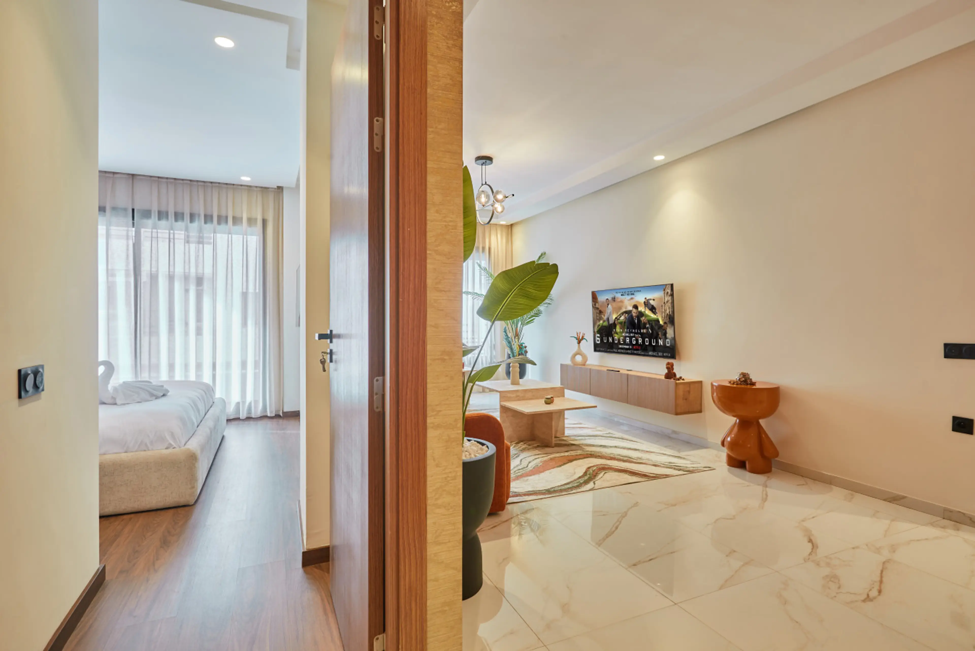 Welcome to this stunning two-bedroom apartment located in the prestigious city of Casablanca. This modern and luxurious residence offers a perfect blend of comfort and style, making it an ideal choice for professionals, married couples, or small families. Upon entering, you will be greeted by a sp...